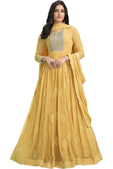 Amazon Com Henith Collection Indian Pakistani Ethnic Wear Embroidered Anarkali Suit Anarkali Gown For Women Yellow Xs Clothing Shoes Jewelry